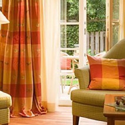 Wir durften alle Zimmer und Suiten mit Polstermöbeln ausstatten und die Fenster gestalten.