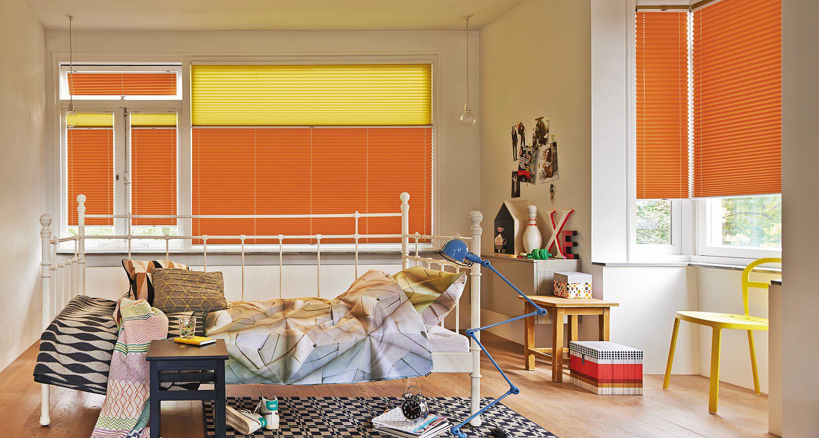 Plissees sind ideal für Schlafzimmer und Räume mit Mehrfachnutzung. Tag und Nacht-Anlagen kombinieren einen transparenten und einen blickdichten Stoff in einer Anlage und ermöglichen so eine flexible Lichtregulierung – bei Tag und bei Nacht. Auch eine Kombination von Plissees und Rollos in einer Anlage ist möglich.